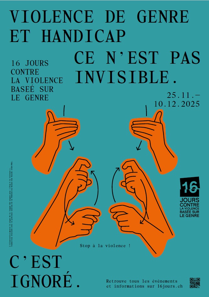 Stopper la violence basée sur le genre ! C’est le slogan d’une campagne de prévention qui débute cette semaine. Les « 16 jours contre la violence basée sur le genre » se traduisent par des événements dans toute la Suisse : des conférences, des expositions et des actions de rue.