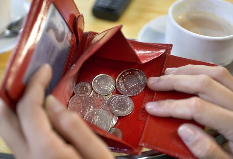 (KEYSTONE/Martin Ruetschi) A person pays with coins in a restaurant in the main railroad station in Zurich, Switzerland, pictured on October 24, 2005. (KEYSTONE/Martin Ruetschi)