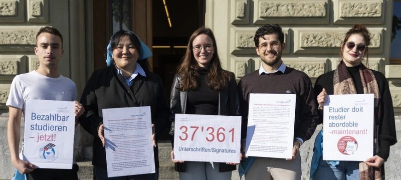 Les étudiants se sont mobilisés mercredi contre les coupes budgétaires dans la formation. Une manifestation nationale a eu lieu à Berne et des événements locaux étaient organisés dans toutes les universités du pays. Une pétition munie de 35’000 signatures a été remise à la Chancellerie fédérale.
