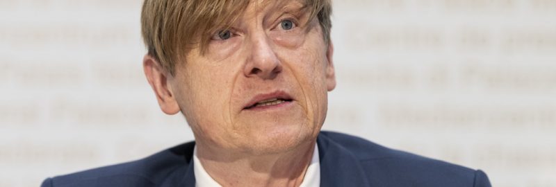 Le Surveillant des Prix, Stefan Meierhans, lors de sa conférence de presse annuelle le 2 mars 2026 à Berne. (KEYSTONE/Alessandro della Valle)